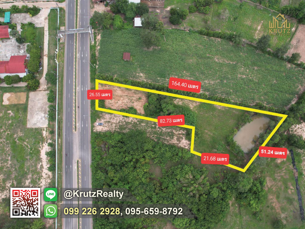 Land for sale, 3 rai 37 square wah, next to the main road. Kalasin-Mukdahan Province, Mueang District, Mukdahan, prime location, suitable for a warehouse, house, residence, cafe, car showroom or car repair garage, gas station, location, entrance to the city.