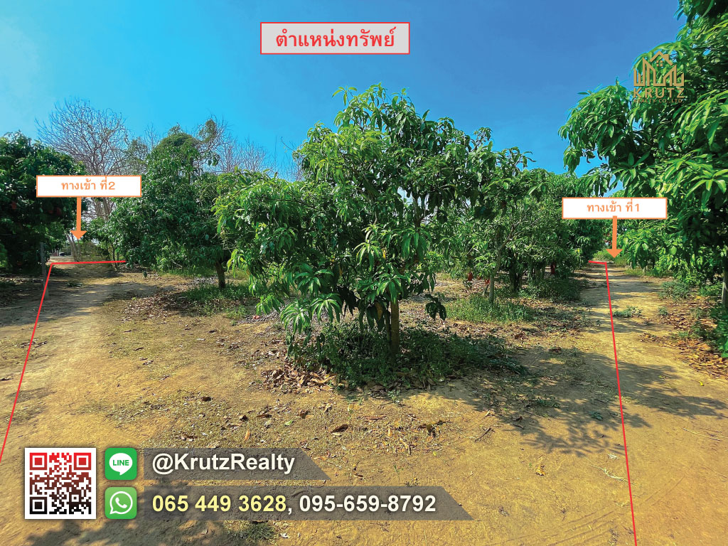ขอแนะนำ ที่ดินพร้อมสวนมะม่วงกว่า 150 ต้น ที่ดินติดถนนทั้งด้านหน้าและหลัง มีทางเข้าออกได้หลายทางอยู่ในชุมชน น้ำและไฟเข้าถึง