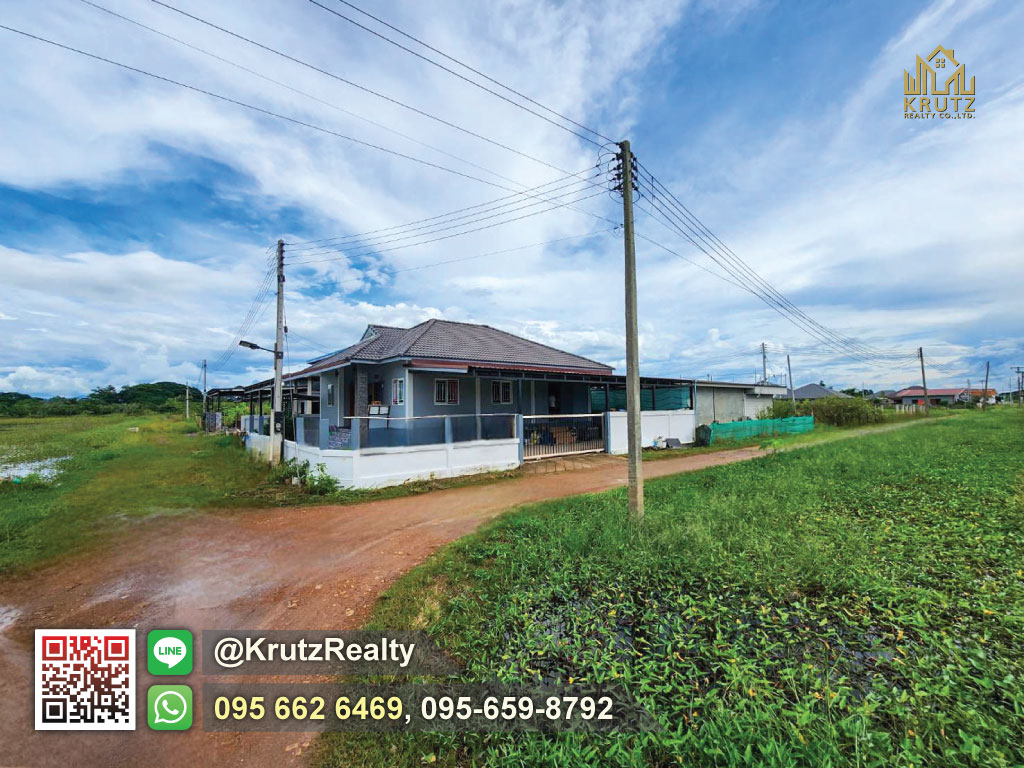 House with land for sale, good location, corner plot, land size 65 square wah, Nong Fak Subdistrict, Saraphi District, Chiang Mai Province. Good atmosphere, peaceful and quiet, suitable for living or generating income. Renovate the house to sell/rent for income.